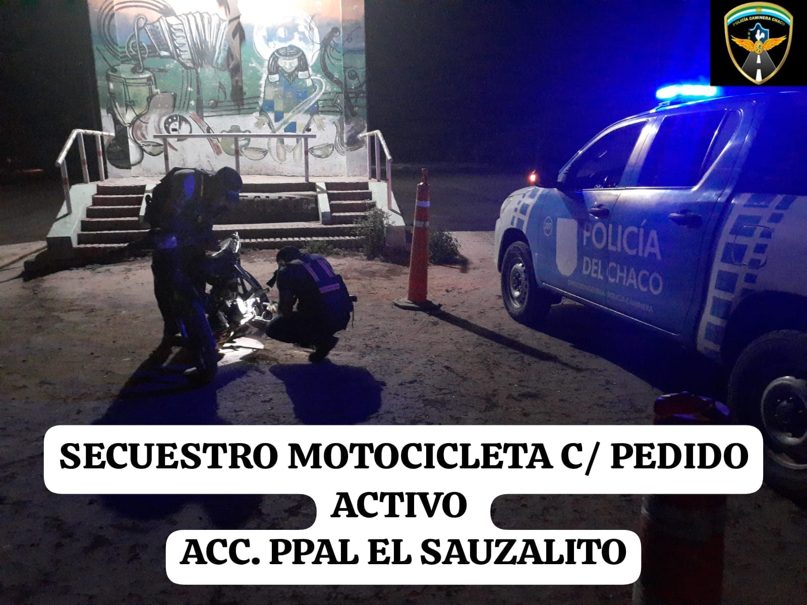 Anoche alrededor de las 22:00, efectivos realizando control sobre el acceso principal planta urbana de la ciudad del Sauzalito, secuestraron una Motocicleta Honda wave 110 cilindradas.