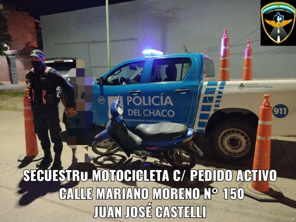 Finalizando la jornada del día martes, en otro operativo vial llevado a cabo sobre Calle Mariano Moreno N° 150-Castelli, secuestraron una motocicleta con Pedido de Secuestro, desde fecha 01/01/2022.