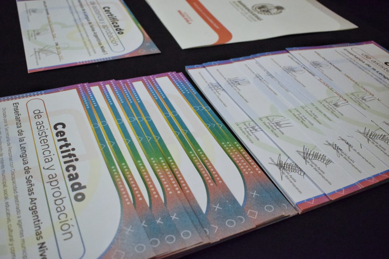 Con el acompañamiento de la secretaria de las Personas con Discapacidad Carolina Jarolin, la secretaria de Gobierno Paola Latyn y el secretario coordinador de Gabinete Rodrigo Ayala Pared, se desarrolló la entrega de certificados de la 1° capacitación de Lengua de Señas Argentinas, a 60 trabajadores de la familia municipal que se desempeñan en distintas áreas.
