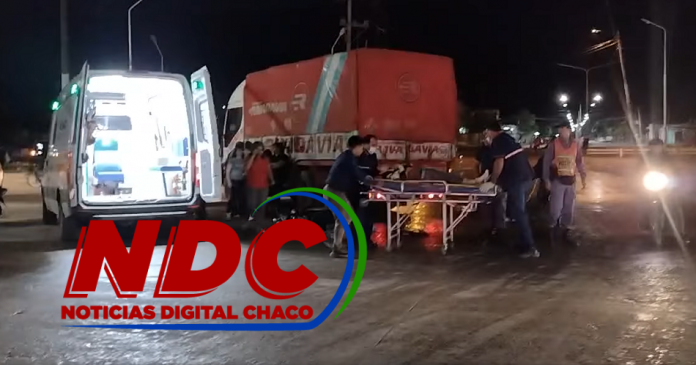 Este miercoles alrededor de las 20:20 horas ocurrió un accidente de tránsito en la intersección de las avenidas Soberanía y Alberdi, donde una motocicleta en la que circulaban dos personas colisionaron con un camión de gran porte marca Iveco.