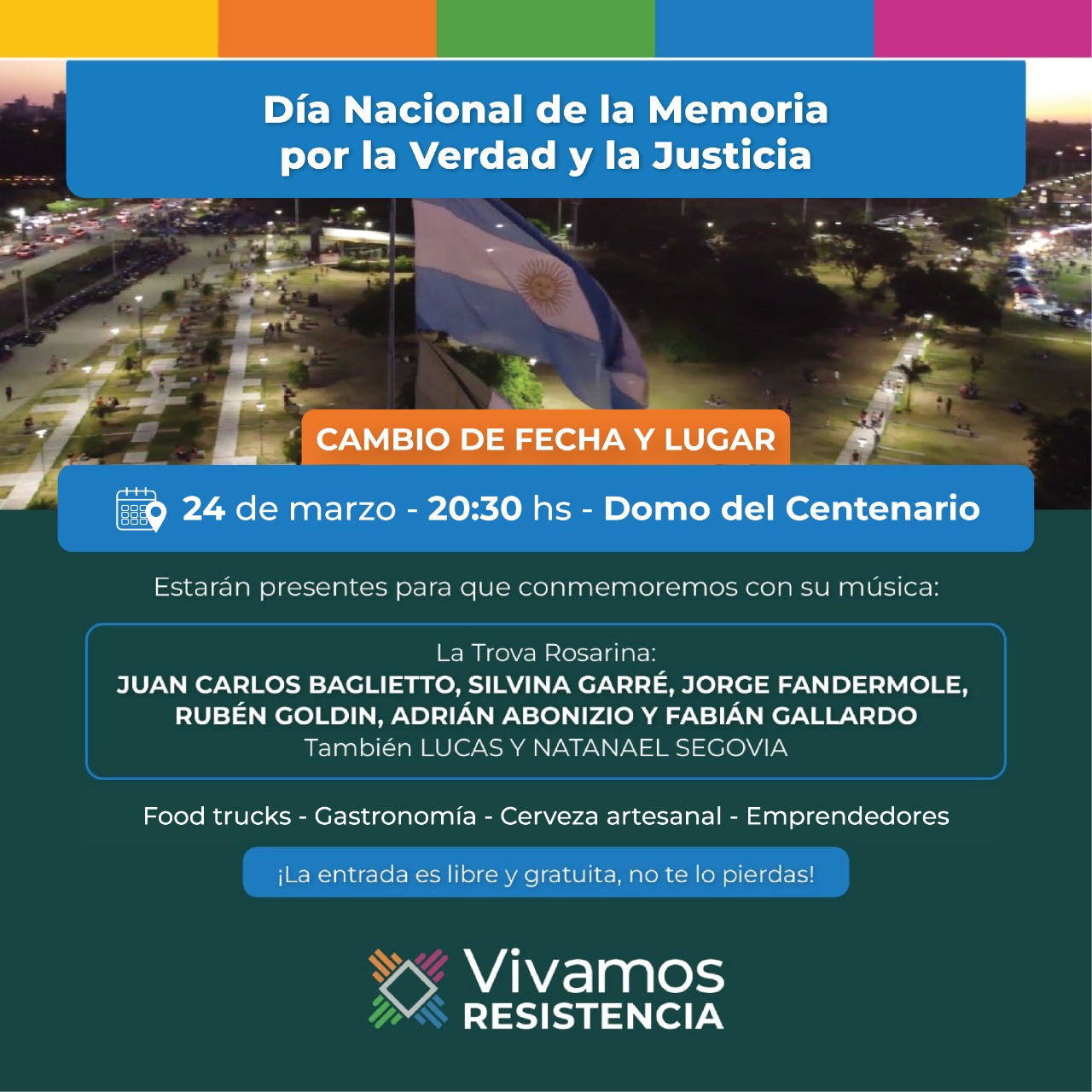 Durante el evento se llevarán a cabo varios números artísticos cuyo principal espectáculo será la presentación de la Trova Rosarina integrada por Juan Carlos Baglietto, Silvina Garré, Jorge Fandermole, Rubén Goldín, Adrián Abonizio y Fabián Gallardo. Además, previamente habrá una actuación especial de Lucas y Natanael Segovia.
