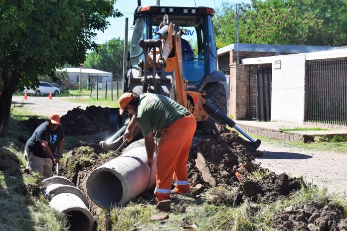 Trabajadores municipales realizaron tareas de refuncionalización de desagües en el barrio España. Entre los trabajos, reacondicionaron sectores de calles no pavimentadas mediante nivelación de conductos a cielo abierto, recambio de tuberías y limpieza de cruce de calles.