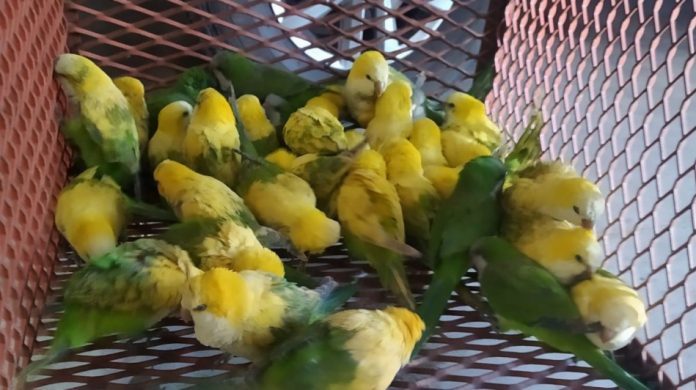 Las autoridades dieron con dos hombres y confirmaron la tenencia de dos cajas con siete cotorras y 18 en otras. Las aves se hallaban en un espacio reducido, en malas condiciones, sin comida ni agua.