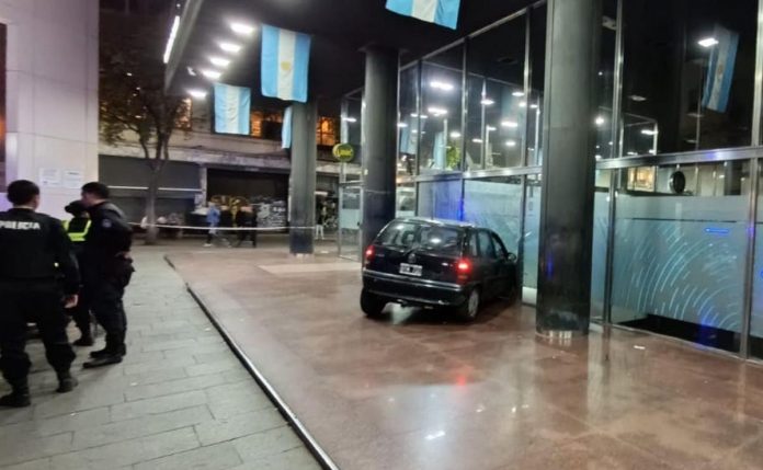 El autor del hecho, de 30 años, quedó detenido en la intersección de Córdoba y San Martín, tras estrellar su auto contra el banco.
