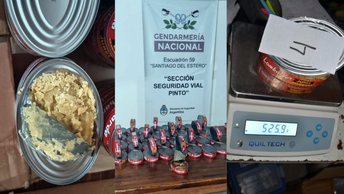 Efectivos de Gendarmería Nacional detuvieron a cinco personas que intentaron trasladar pasta base de cocaína camuflada en latas de jurel cuando se trasladaban en micro por Santiago del Estero.