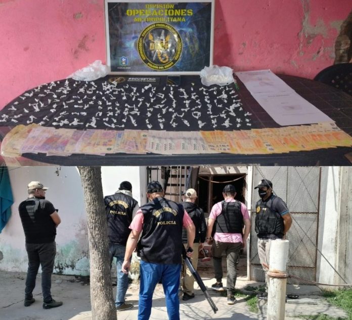 Otra intervención contra el negocio de la droga tuvo lugar este mediodía cuando efectivos pertenecientes a la División Operaciones Metropolitana, dando cumplimiento a la orden de allanamiento emitida por el Juzgado de Garantías 5, en un domicilio ubicado en calle 2 de Febrero 1300 aproximadamente en Villa del Oeste, lograron la aprehensión del principal investigado en una causa por trafico de estupefacientes, un hombre de 36 años, luego de un allanamiento en el cual, los agentes que inspeccionaron la casa detectaron un total de 201 bochitas de Cocaína junto con una bolsa conteniendo trozos sólidos diminutos de la misma sustancia, alcanzando un pesaje total de 111 gramos, como así también, un envoltorio conteniendo 1 gramo de Marihuana, un celular, restos de bolsas con las que preparan las dosis y dinero en efectivo por la suma de $74.270.