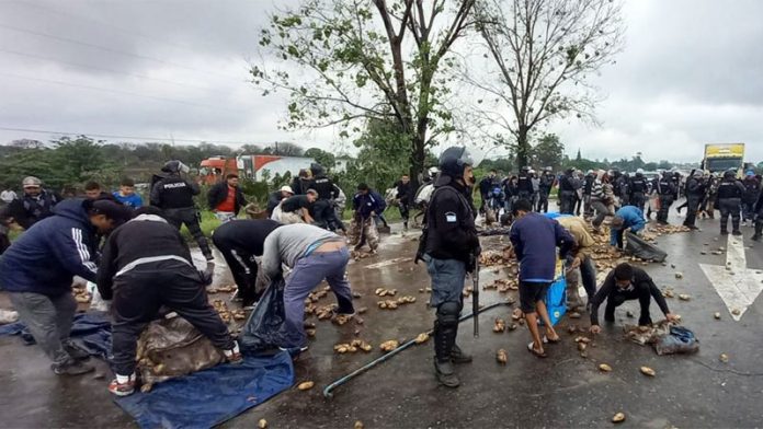Un camión que transportaba papas chocó con un taxi este miércoles en Tucumán y los vecinos aprovecharon para robar el cargamento que quedó tirado en la autopista Circunvalación.