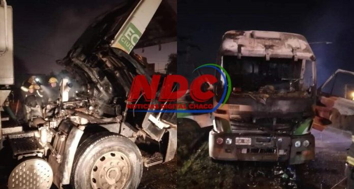 El chofer salió ileso. El fuego se originó en la parte de la cabina y caja contenedora.