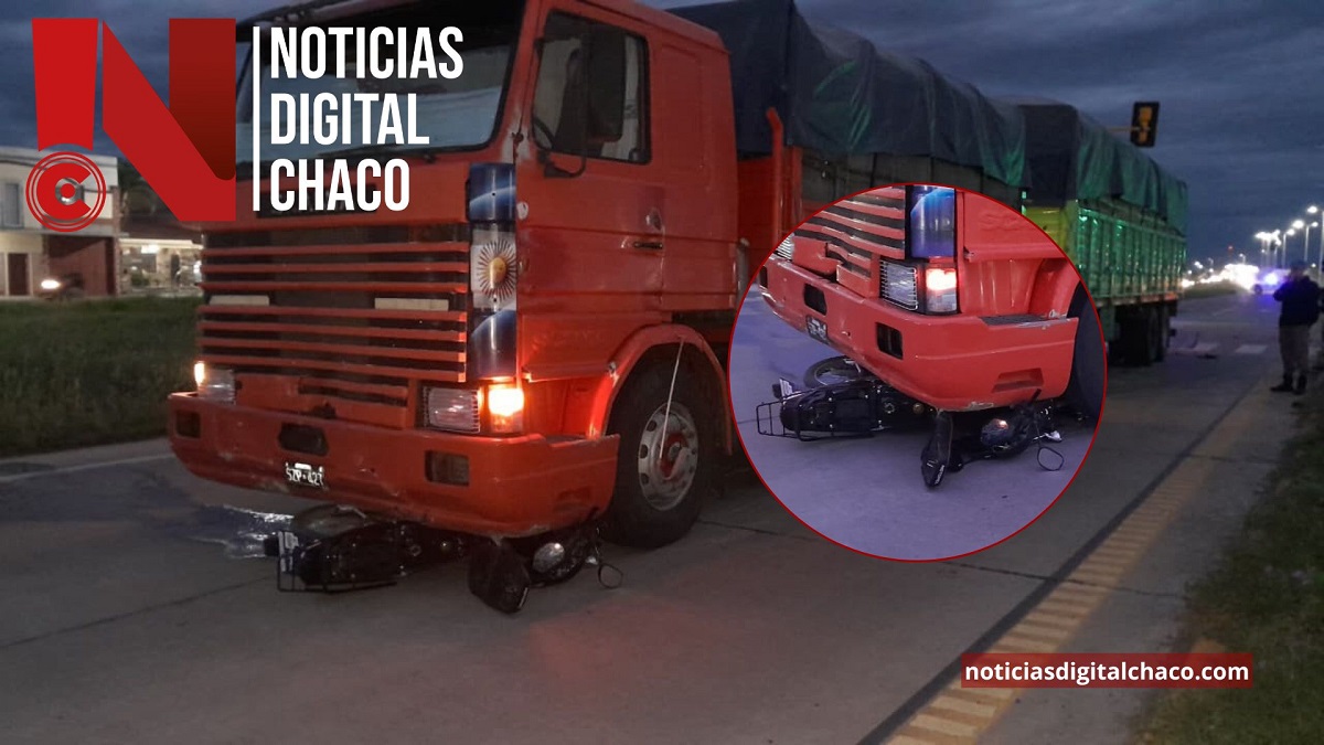 Esta tarde a las 18:45, personal de la Comisaría Undecima intervino en un accidente de tránsito ocurrido en Ruta Nacional N°11 y avenida Alvear, donde se vieron involucrados un camión Scania y una motocicleta Motomel.