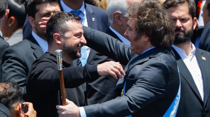 “Es una ola nueva, un viento nuevo. Y sea como sea, es difícil, pero nosotros hoy estamos acá. Vinimos a apoyarlo (a Milei) y a ver cómo es el pueblo argentino, que creo que también nos presta apoyo”, agregó Zelenski.